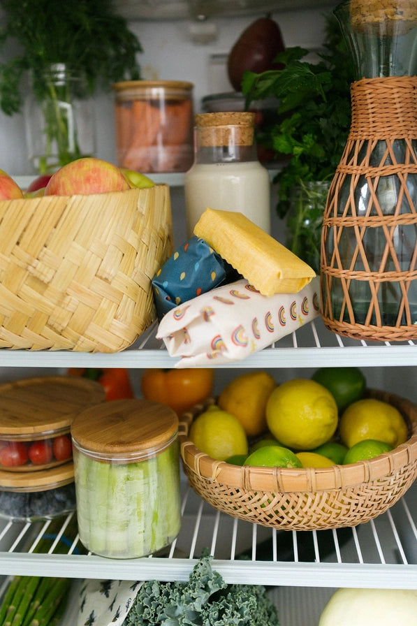 These handmade, compostable beeswax wraps combine style and sustainability. They are Ideal for keeping leftovers fresh, extending the life of fruits & veggies, wrapping up snacks, or covering containers of all shapes and sizes.