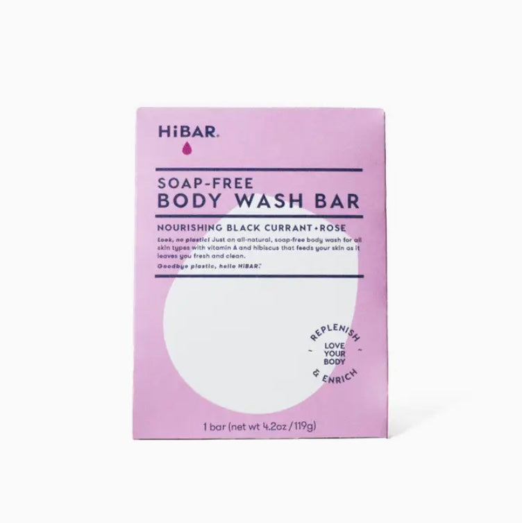 Nourishing Black Currant + Rose - Your everyday go-to for soft, enriched skin. With pomegranate sterol and jojoba proteins to feed skin. HiBAR’s soap-free, gentle, pH-balanced body wash bar is safe for all skin types. This non-comedogenic formula won't clog pores. With four unique functions, and natural scents that delight the senses.