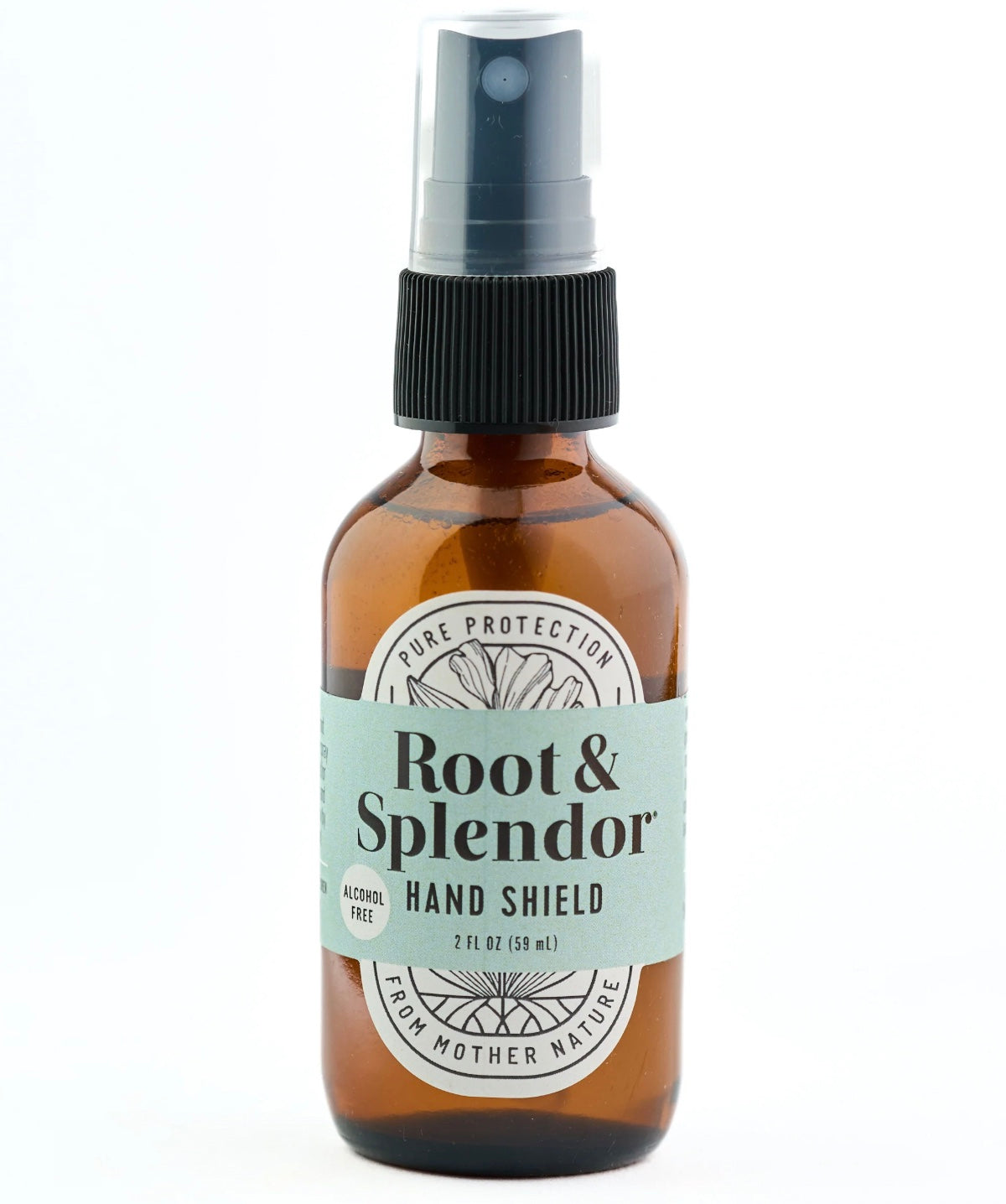 Hand shield is a 100% natural, 100% non-toxic and 100% eco-friendly hand cleanser to keep hands protected, cleaned & moisturized while on-the-go and at home. Hand shield contains a powerhouse combination of vegetable glycerin and carefully sourced pure essential oils that maximize the natural antibacterial, antimicrobial and antiviral properties of these essential oils. Formulated without alcohol to protect the natural micro-biome of the hands, Root and Splendor hand shield leaves hands cleaned, moisturized and protected with wonderful, uplifting scents of citrus and cinnamon.
