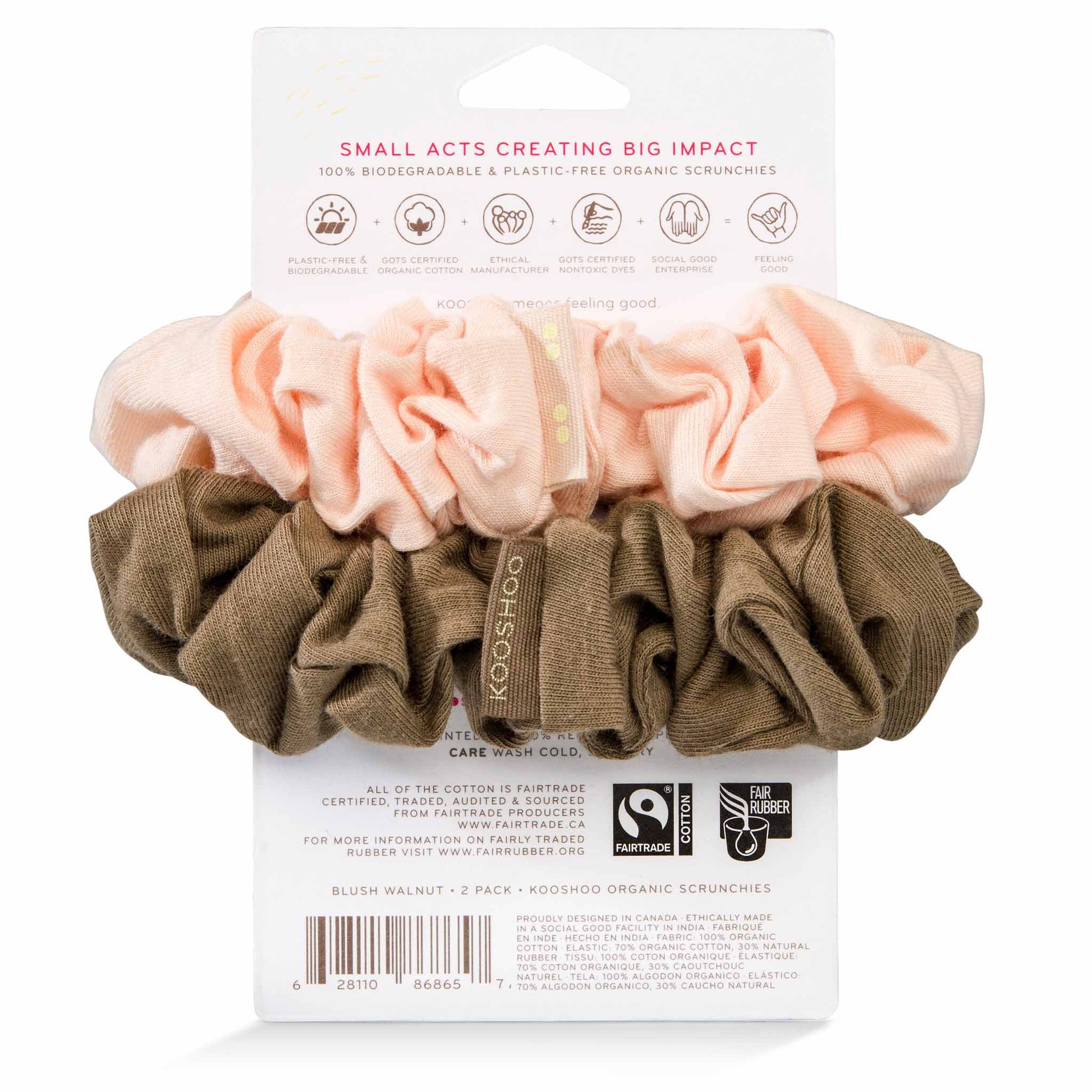 KOOSHOO scrunchies are over 3x stronger than your average scrunchie. They are gentle on hair, great for all hair types, eco-friendly, 100% plastic free, vegan, fair-trade, and made from 100% biodegradable materials.