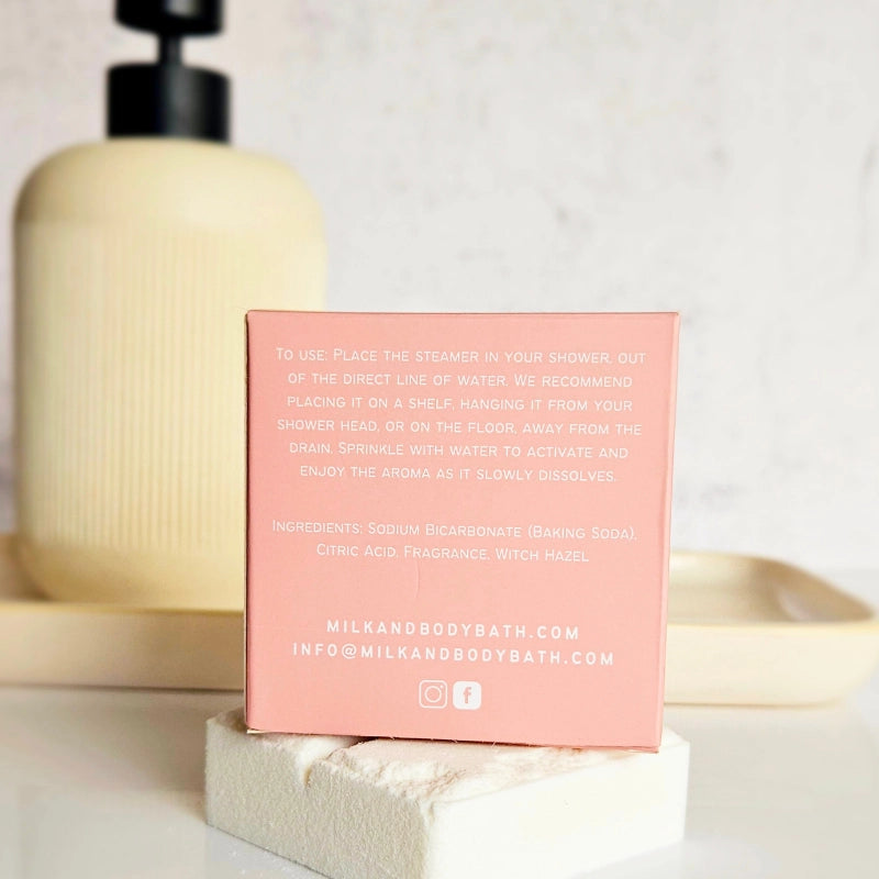 Milk + Body shower steamers are the perfect scented escape to help you destress and relax from your day. This steamer can last for one blissful, concentrated shower, and up to 3 lightly scented showers - depending on how wet the steamer gets while in use.